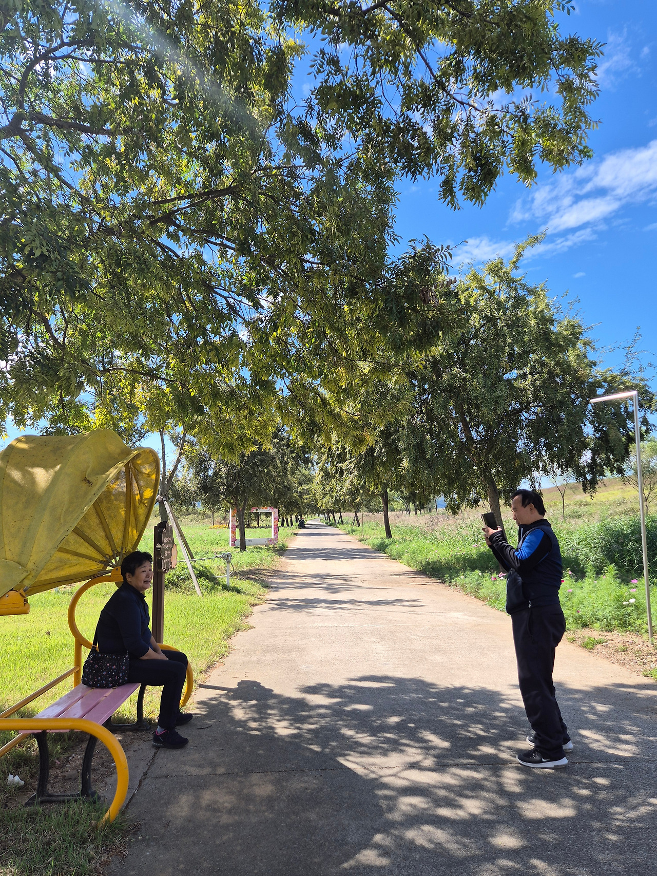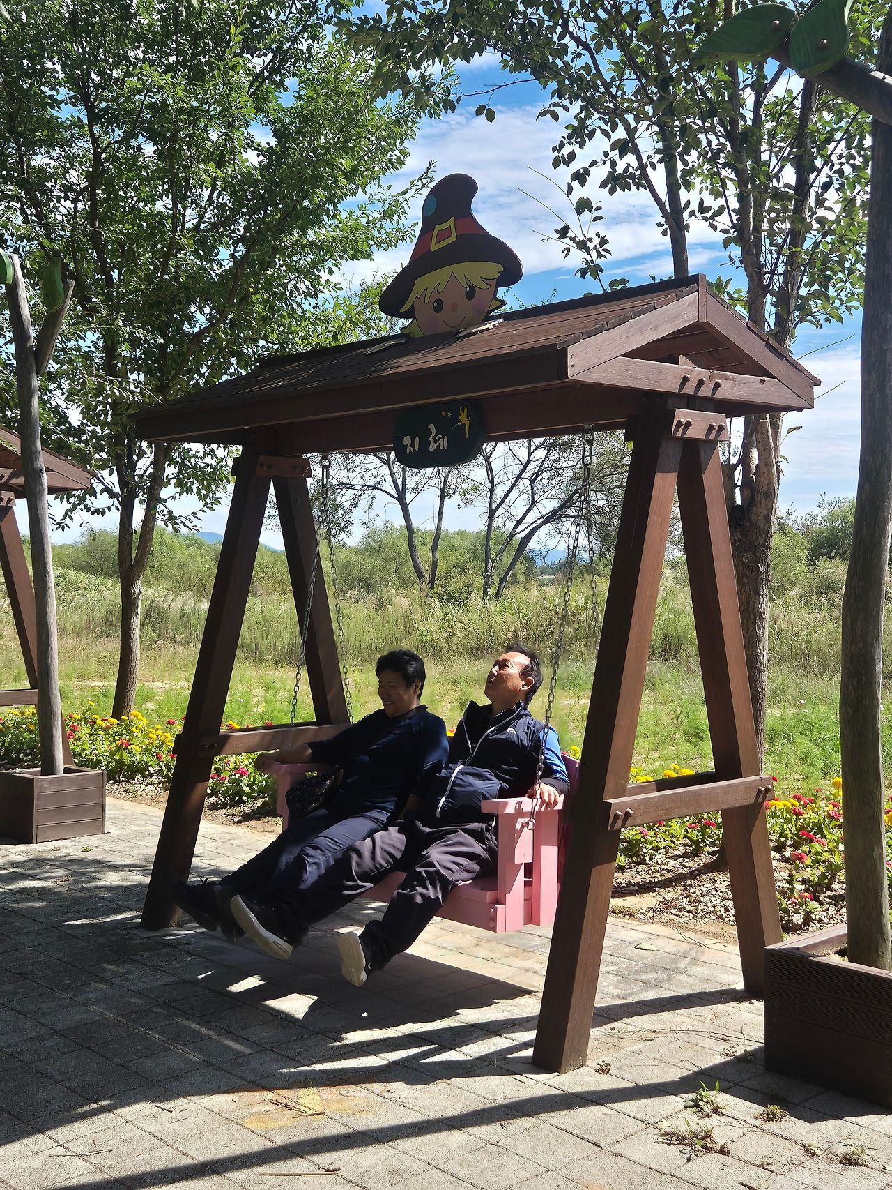 둘 다 걷는 건 싫어해서 좀 걷다가 쉬고, 또 걷는가 싶으면 이내 흔들의자에 앉아 한참 동안 수다만 떠는 두 사람은 그들만의 방식으로 본인들의 계절을 흠뻑 맞고 있었다. 자식이지만 그들의 데이트코스는 적성에 맞지 않아 앉아서 쉬라 하고 홀로 길을 걷다 보니 일하고 있을 남편생각이 문득 들었다.