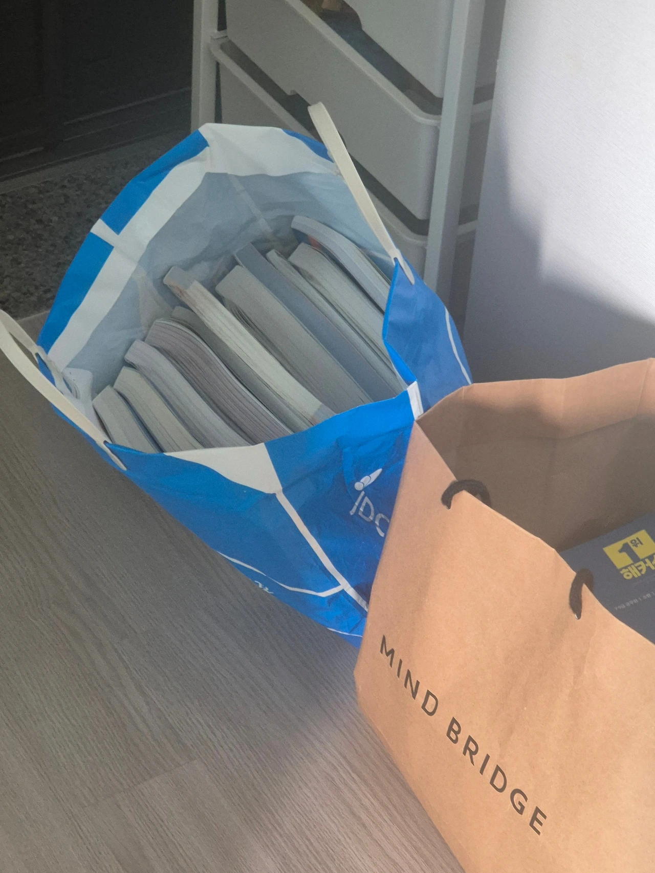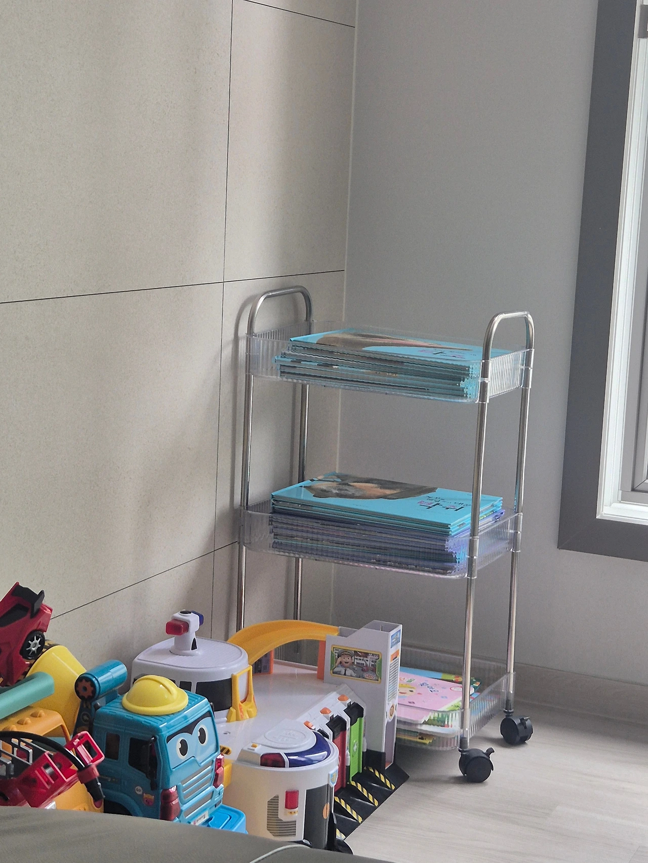 숨겨뒀던 아이의 책들을 꺼내 꽂아 넣고