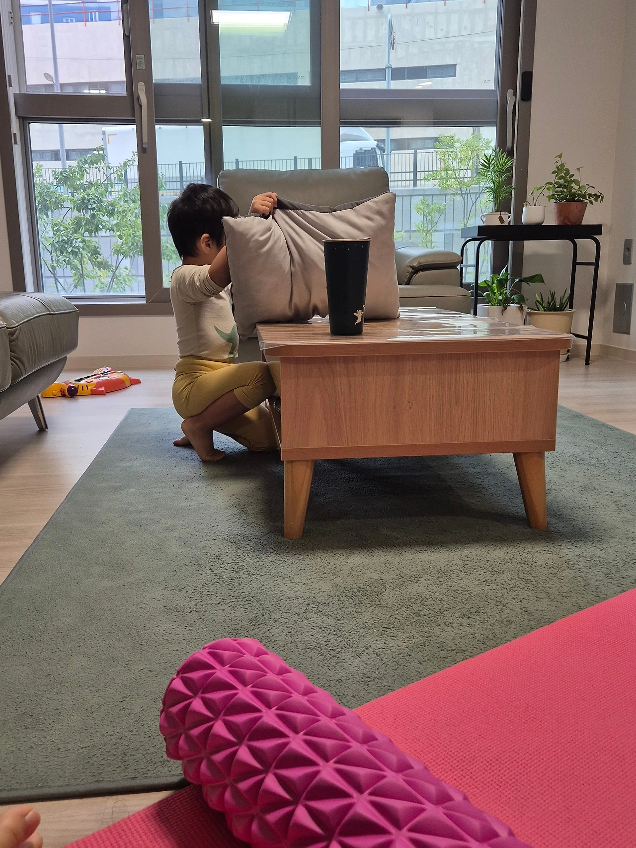 커피를 챙겨 거실에 요가 매트를 펼쳤다.