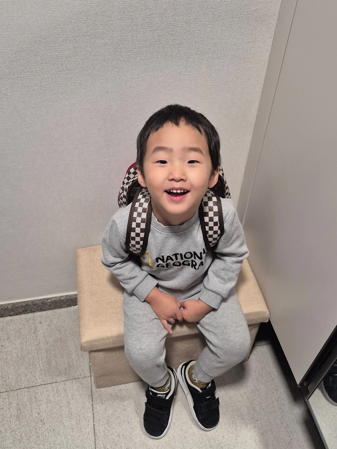 얼마 전 신발장에 마련한 작은 의자에 앉아