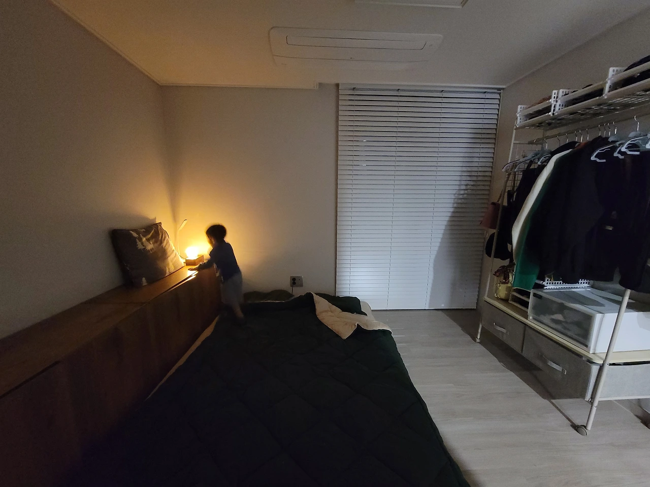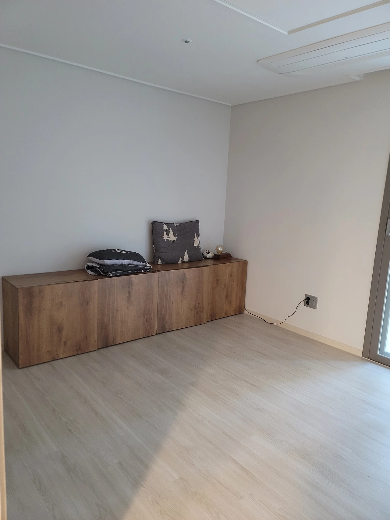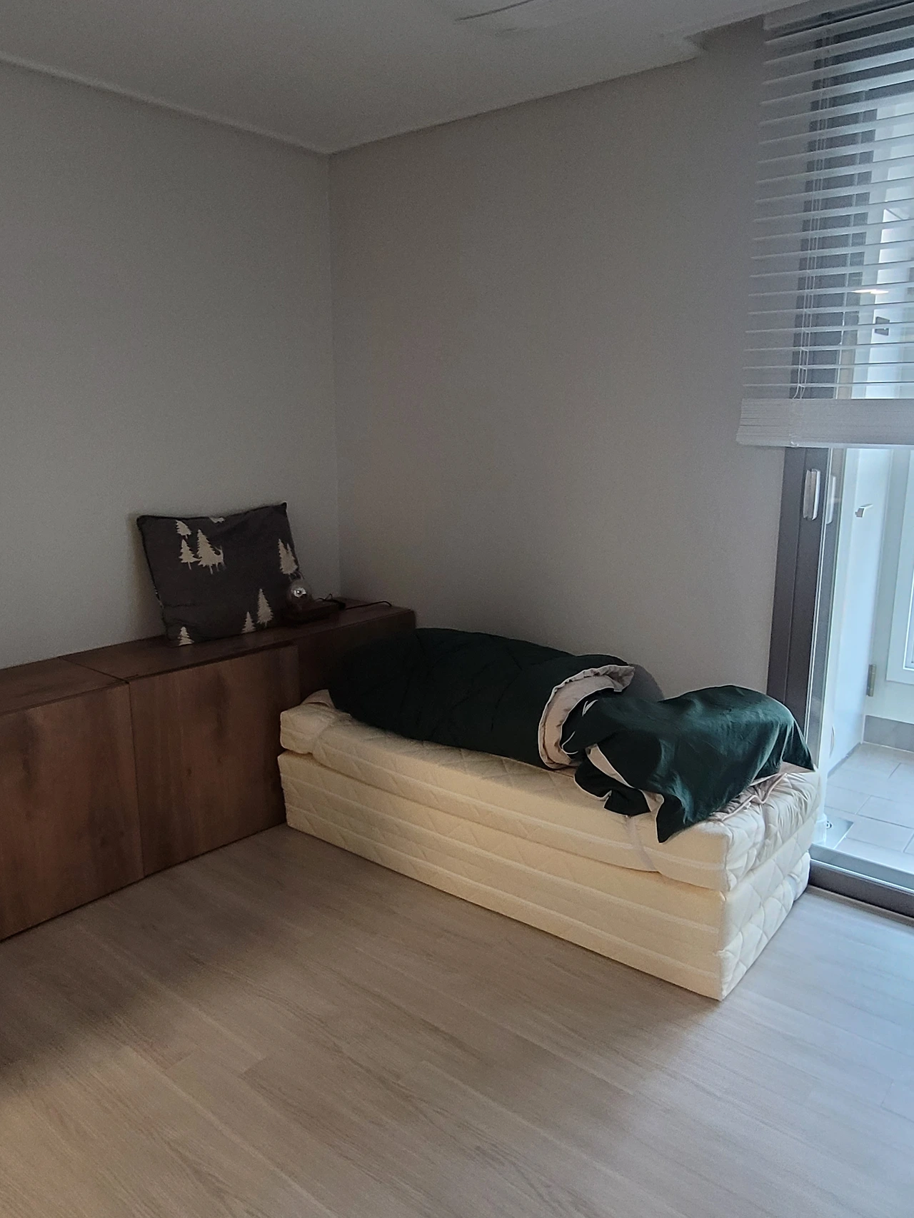 바닥생활을 하기로 남편과 결정하며 버리고 온 침대. 침대 하나 빠졌을 뿐인데 방이 참 넓다.