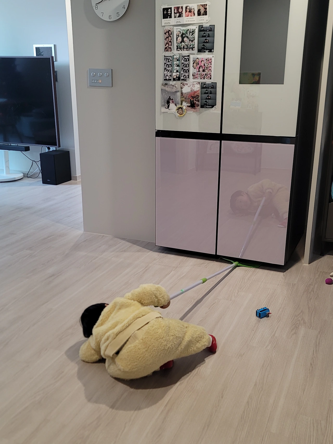 들어서는 순간 뽀로로와 눈 마주친 도하.
