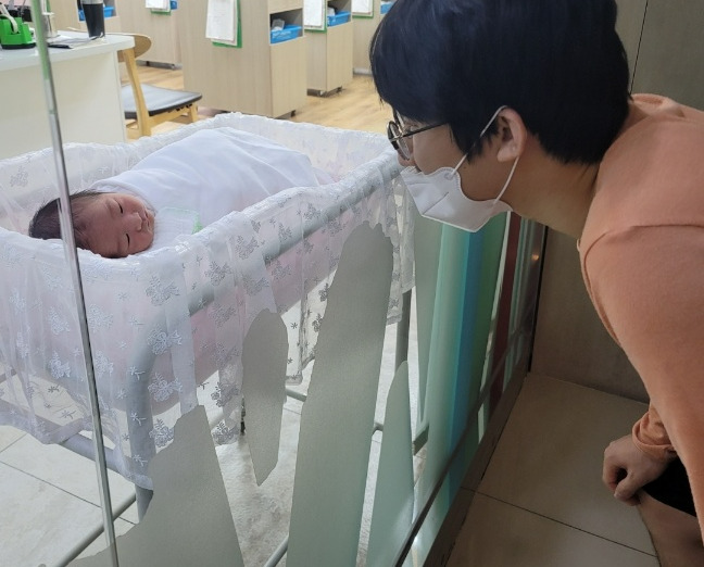 우리 둘의 얼굴을 잘 섞은 얼굴을 보니 우리 자식이 맞는 것 같아.