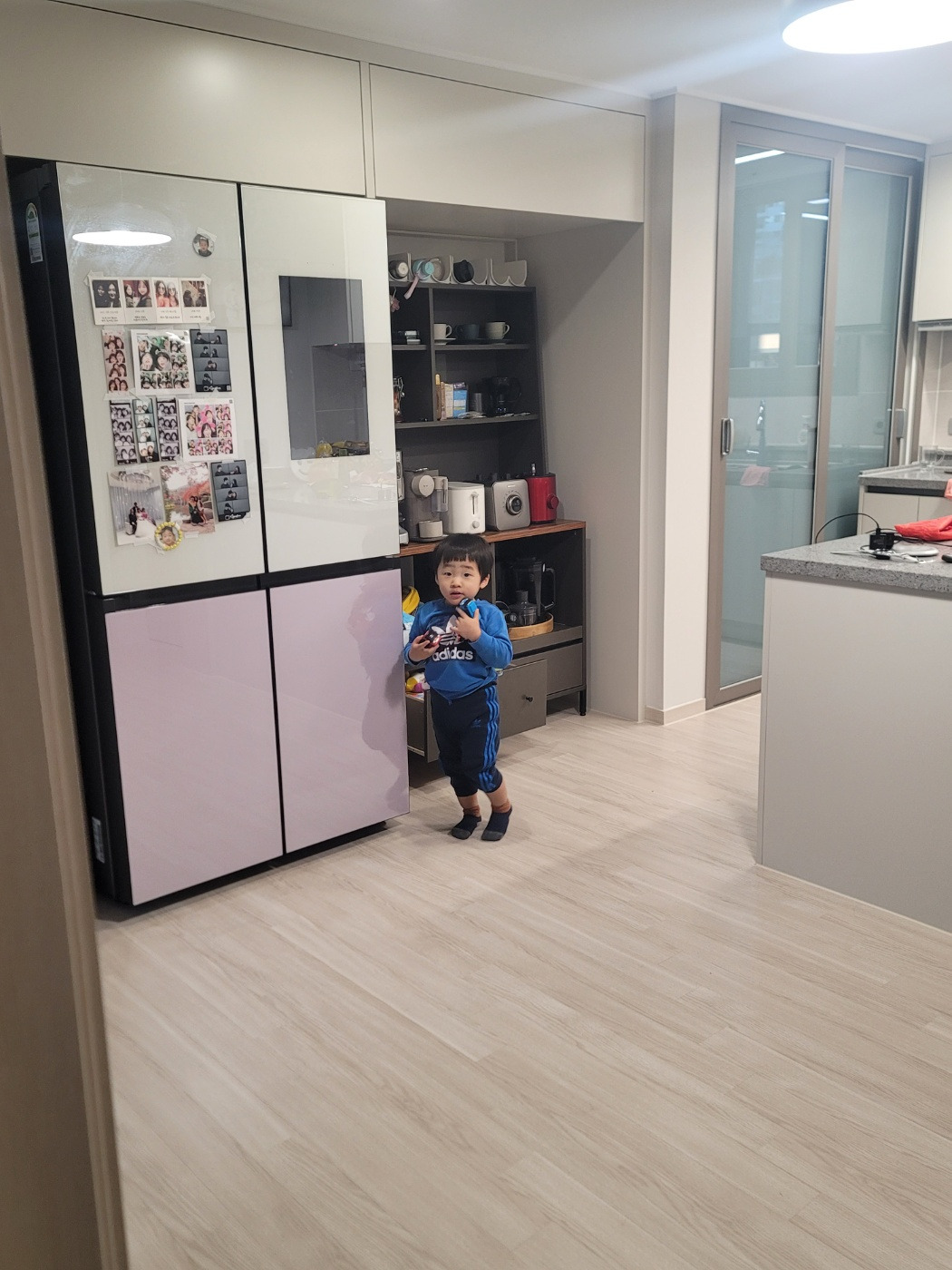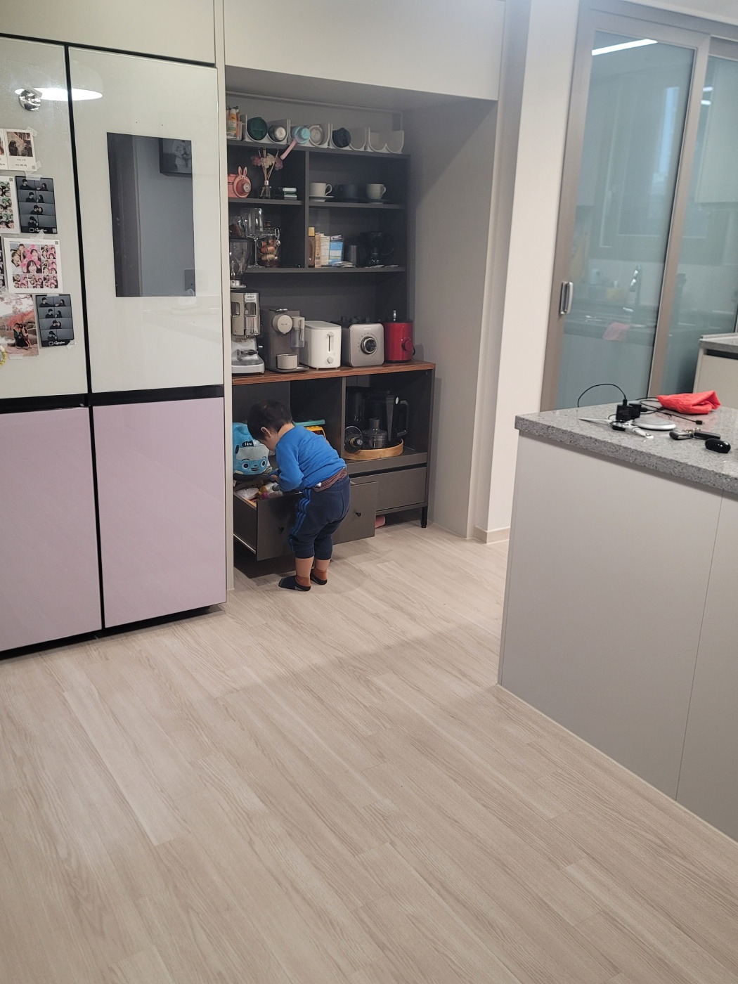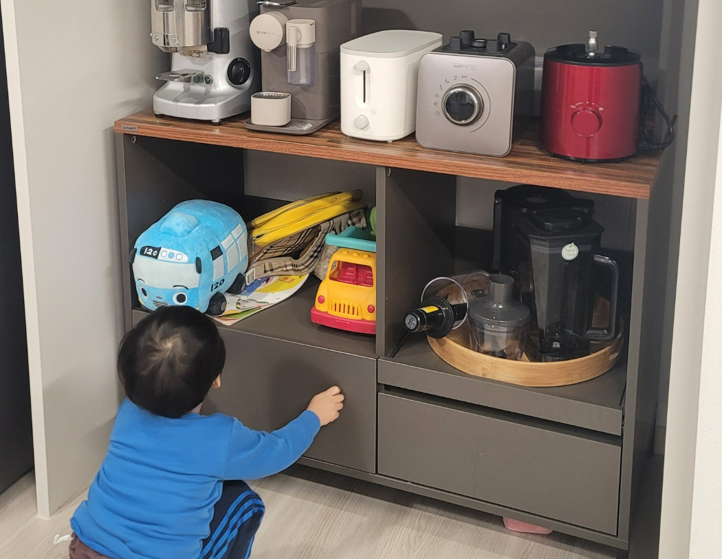 냉장고 옆 주방그릇장 아래 서랍장을 열면