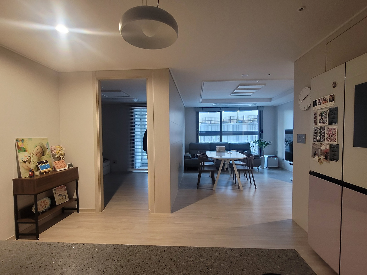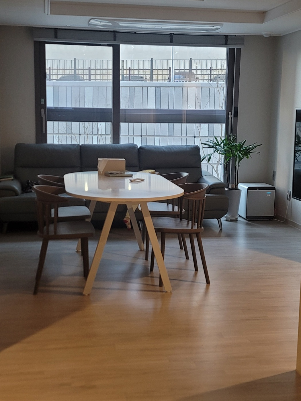 누가 봐도 식탁을 두라고 설계해 놓은 듯한 자리가 있다.