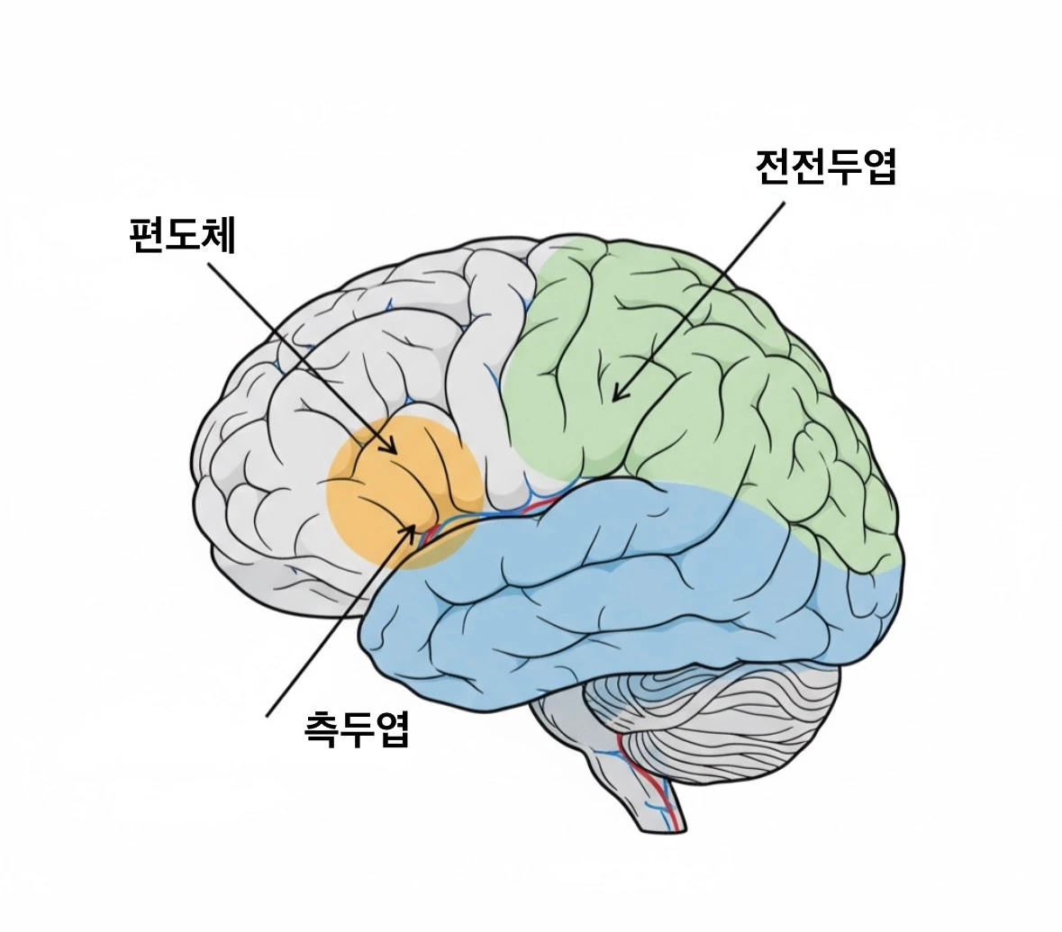 전전두엽은 “저건 단순한 집중일 뿐이야”라며 불안을 조절하려 애쓴다.