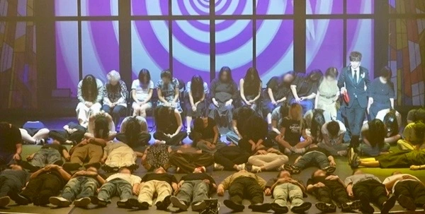 한 마술사의 집단 최면 공연에서는 흥미로운 장면이 펼쳐진다.