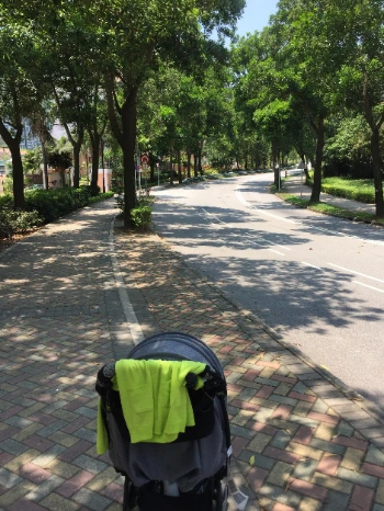 가장 널찍한 도로를 따라 걷다 보면 양 옆으로 펼쳐지는 산과 바다 그리고 울창한 가로수 까지. 한번 숨을 훅 들이마시면 깔끔함이 느껴지는 이곳은 평지가 아니어서 더 유모차 산책이 좋았다. 지형 상 오르막길과 내리막길이 반복되어 타고 있는 아이에게도 적절한 긴장감을 줄 수 있었다. 물론 아이는 산책 시작 몇 분과 동시에 편안했는지 잠들었지만 말이다.