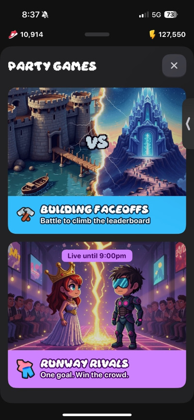 - 여기까지만 해도 충분할 텐데 제작진은 이걸로 부족하다고 느꼈는지 게임 내의 아바타를 꾸미는 요소도 넣었다. 그리고 매일 저녁 8시 - 9시 미니 게임으로 아바타 챌린지 이벤트를 (Runway Rivals) 한다. 개인적으로는 제작진의 불안이 만든 과잉처럼 보여 굳이 없어도 될 것 같은데 보면 참여하는 사람들이 아예 없지는 않은 것 같다. (4-50명 정도?)