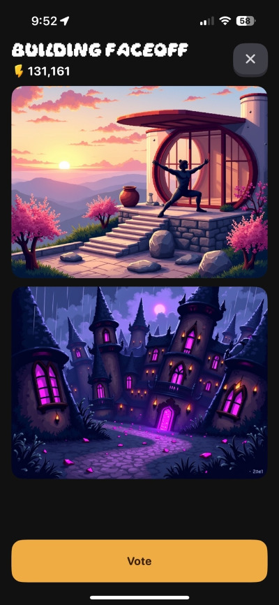 - 그럼 이 만든 건물로 뭘 하냐고? 좋은 질문이다, 별로 할 수 있는 것은 없다. 다른 유저의 건물을 공격하거나, 다른 유저의 공격을 방어하는 아이템을 건물에 넣을 수 있다. 그리고 게임 내 이벤트 인기투표(Building Faceoffs)로 매일 점수를 얻거나 잃을 수 있다. 개인적으로 이런 건 별로지만, 게임이라 경쟁 요소가 필요할 것 같긴 하니 이해는 된다. 그래도 공격 차단 기능이라도 있으면 좋겠다. (파괴된 건물은 잔해로 남기도 한다.)