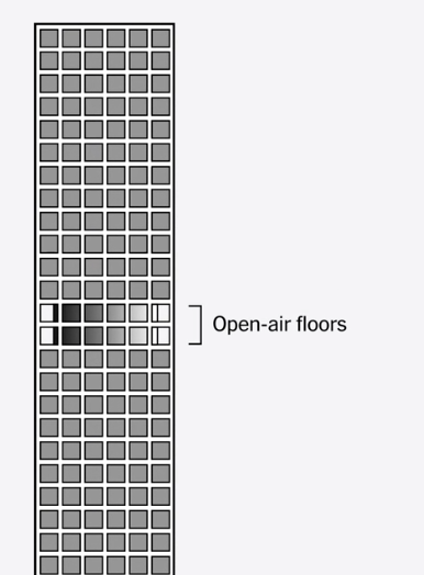 개발업자들은 바람이 통과할 수 있도록 하는 open-air floors 덕분에 그들의 박스형 디자인에 문제가 없을 것이라고 믿었다. 그러나 예상보다 빨랐던 균열의 출현, 새로운 균열의 끊임없는 발생 및 균형추 시스템의 과거 고장은 모두 건물이 바람으로부터 예상치 못한 스트레스에 직면하고 있음을 시사한다고 밝혀졌다.