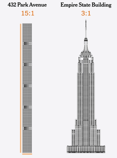 432 Park Avenue는 (앞으로 줄여서 "432 파크"라고 하겠다) 2015년에 문을 연 102층의 럭셔리 콘도 건물이다. 아름다운 외관과 늘씬하고 잘 빠진, 도발적이며 정돈된 형태, 마치 뉴욕의 멋지고 아름다운 엘리트의 모습 같은 아우라와 그에 준하는 인테리어, 뉴욕을 내려다보는 전망과 엄청난 집값으로 럭셔리의 진수를 보여주며 세계의 부자들을 유혹해 왔다. 이 건물의 아름다운 디자인은 마케팅적으로도 큰 성공을 거두어 이 건물의 125개 유닛이 25억 달러 (약 3조 4000억 원) 이상에 팔렸다. 대부분 비밀의 유령회사를 통해서.