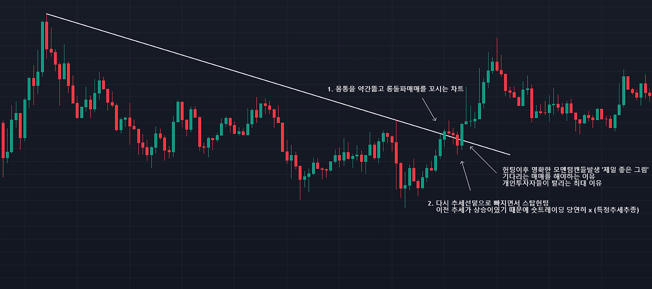 4. 개인투자자들이 털릴만한 구간은 보통 좋은 타점자리가 됨(세력이 유동성 활용)