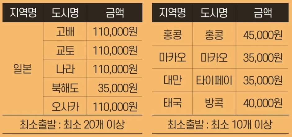 또 해당 지역 해당 날짜의 예약건수가 출발 일주일 전까지 충족되지 않을 경우 여행은 취소되고, 출발 5일 전 유선안내를 해준다고 한다.
