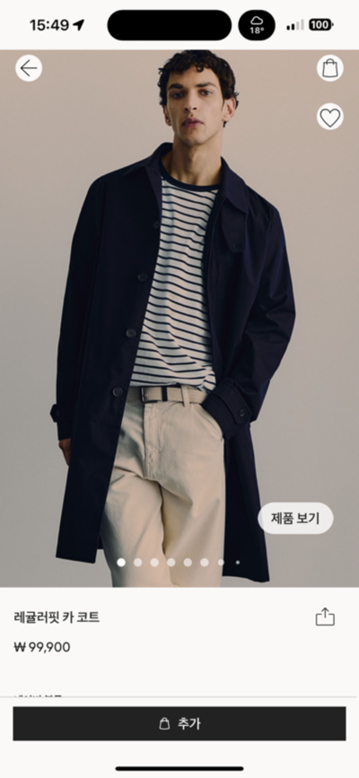 검색하다가 내 눈에 들어온 H&M 사에 얇은 코트가 눈에 들어왔다.