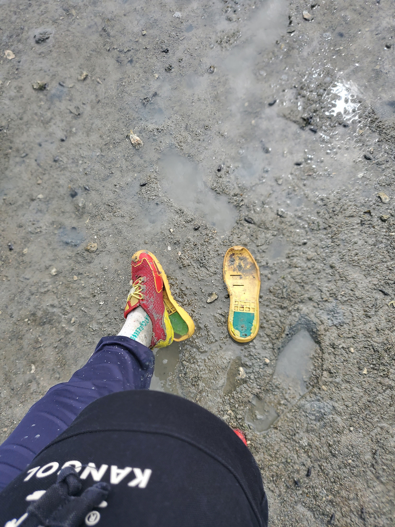 현실은 (몸무게 40kg 초반) 비교적 가벼운 내 발도 푹푹 빠져서 허우적허우적. 갯벌에서 수영이... 되네? 단단해 보이는 곳을 밟아도 힘없이 빠져버리는 갯벌의 늪. 여기저기서 "내 다리 내놔~!!" 외마디가 들리기 시작했다. 남자 스태프들은 허벅지까지 빠져서 서로가 서로를 구하는 구조 상황이 반복됐다. 그렇게 전우애를 또 배웠다.