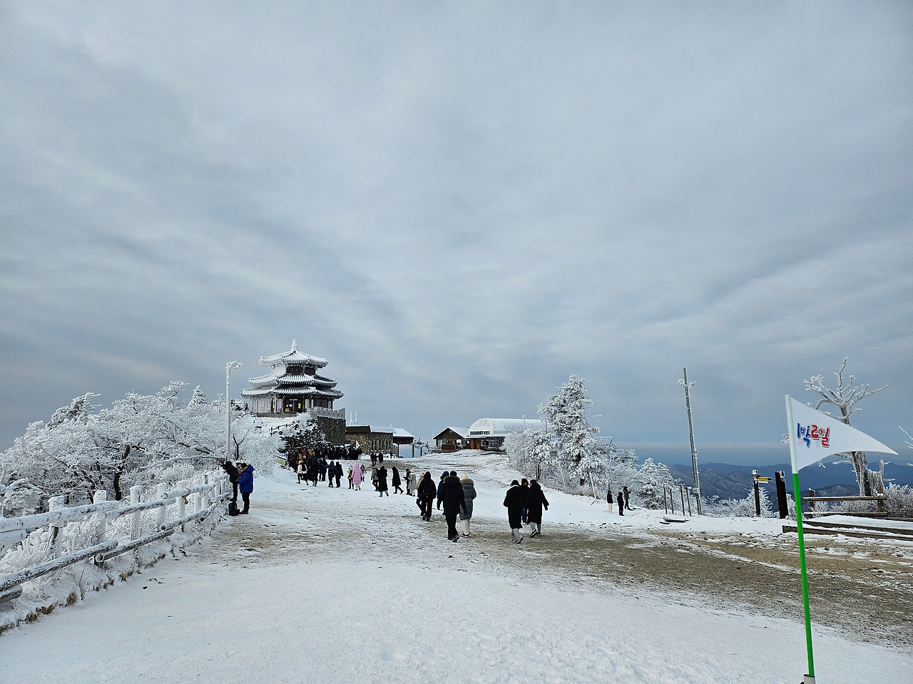 이대로 추운 날씨가 계속되면 눈이 꽁꽁 얼어서 *상고대가 유지될 것이다.