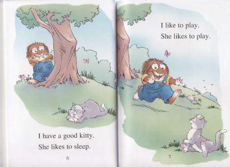 어제 아침, 평소보다 좀 일찍 일어난 아이와 뒹굴거리다가 새로 빌려온, 그러나 아이에게 외면받은 리더스북 리틀 크리터 (Little Critter) 시리즈 읽기를 시도해보기로 했다. (외면받은 이유는 단순히, 같이 빌려온 강아지 이야기 비스킷(Biscuit) 시리즈보다 그림이 예쁘지 않아서다.) “어제 이거 읽었는데 재밌더라, 읽어줄까?” 아이는 흔쾌히 좋다고 했다. 둘이 비스듬히 누운 채로 리틀 크리터 책 중 하나인 <What a good kitty>를 들고 읽어줬다. (원어민이 이 책 읽어주는 동영상 https://www.youtube.com/watch?v=PQg80D5D4vw)