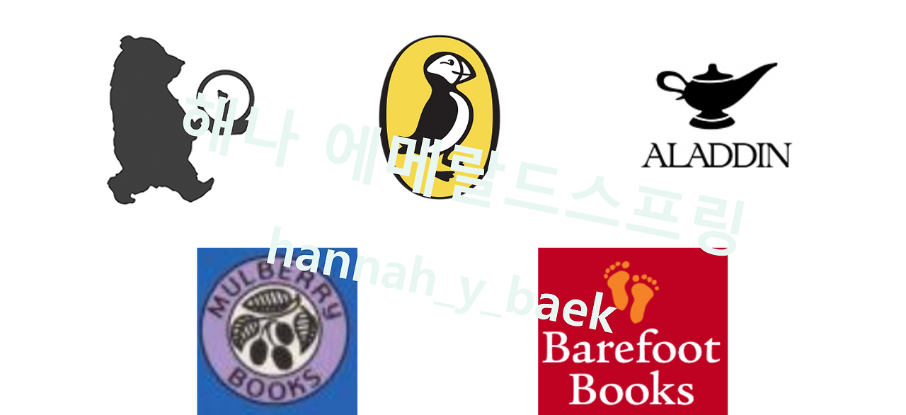 중고서점에 갔는데 미처 목록을 일일이 찾아보기 어려울 땐, 출판사를 확인해보는 게 조금 더 책을 고를 때 수월하다(안전빵이랄까.) 촛불 들고 가는 곰 그림이 있는 Walker books (어린이책 브랜드로 Candlewick Press가 있음)의 책이 가장 많은데, 이 책들은 거의 검증된 책이라고 생각하고 사는 편이다. 실제로 중고매장에 있는 Walker books의 책들은 대부분 추천목록에 있다. 펭귄그림이 있는 Penguin books (어린이 책 브랜드: Puffin)의 책들은 Walker books와 양대산맥이라고 생각하면 된다. 그 외에 램프 그림이 있는 Aladdin books, 발바닥 모양이 있는 Barefoot books, 블루베리 모양이 있는 Mulberry books, Child’ Play도 추천목록 책들을 많이 낸 출판사들이다.