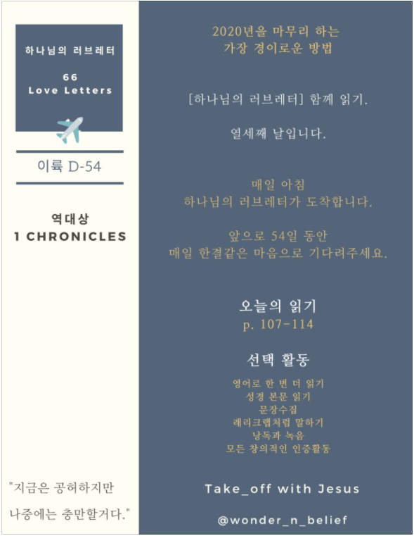 그리고 목구멍 끝까지 불만이 가득 차있는, 그저 홀연히 사라져 버리고 싶은 오늘의 나에게 역대상을 통해 하나님이 하시는 말씀.