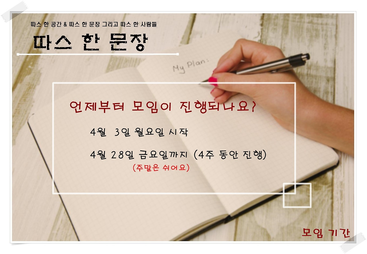 '따스(th)한 문장' 26기는 4주 (주말 제외) 동안 진행합니다.