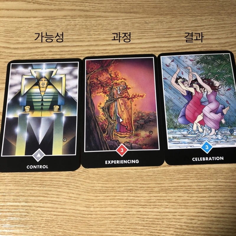 앞으로 하려는 일이 잘될 수 있을지 하나. 어떤 과정을 거쳐 나갈지 둘. 어떤 결과를 볼 수 있을지 셋. 이렇게 세 장 뽑았고 기뻐할 만한 결과라 나왔다.