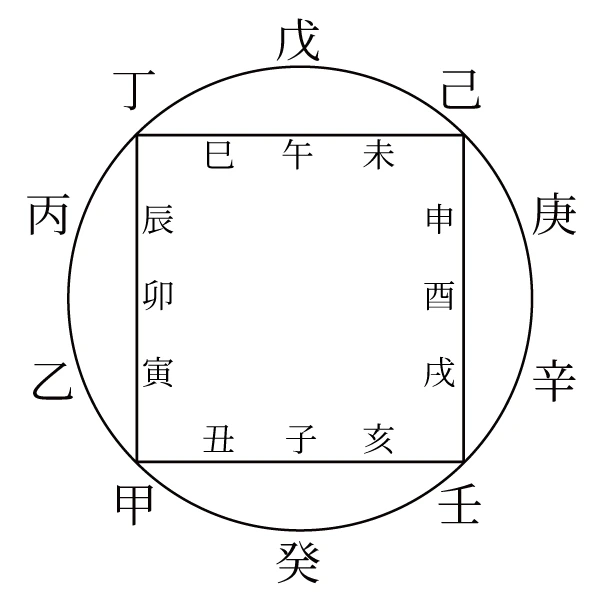 황제 헌원씨가 치우와의 전쟁에서 고전하다가 난을 다스리기 위해 목욕재계하고 천신天神에 제사 지내니 하늘에서 십간과 십이지를 내려주셨다. 황제는 십간을 원으로 펼쳐 하늘 모양을 본뜨고, 십이지를 방으로 펼쳐 땅의 모양을 본뜨니 이로써 간干은 천天이 되었고 지支는 지地가 되었다.1)