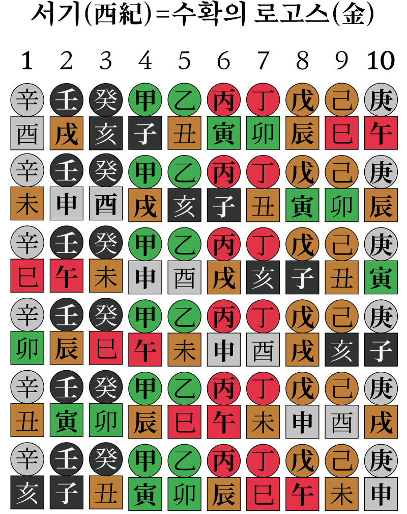 서기는 예수님이 탄생한 시기를 기준으로 서양에서 시작된 역법인데, 재밌게도 서방(西方)은 사상으로 소음(少陰), 오행으로 금(金)에 해당하여 서기 분류법의 시작 기준점에 해당하는 숫자 1에 신금(辛金)이 배정되고, 끝 기준점에 해당하는 숫자 0(10)에 경금(庚金)이 배정되는 것과 의미가 통한다. 또한 오행 금(金)은 수확의 로고스를 가리키는데, 예수님께서는 "추수할 것은 많은데 일꾼이 적으니, 추수하는 주인에게 밭으로 일꾼들을 보내 달라고 간청하라!"(『도마복음』 73절)라고 말씀하신 복음의 메시지와 서기가 보여주는 대표 오행(金)의 로고스가 묘하게 통한다. 나아가 예수님이 지구에서 인간 농사를 추수하고 '지상천국'을 열고자 하는 것은 근현대 한국의 선지자들이 선포한 '후천개벽(인문개벽)'과 뜻을 같이한다.