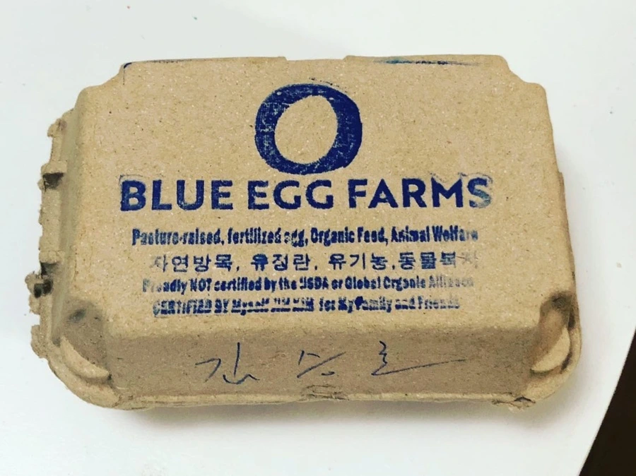 회장님께서는 방문했던 모든 이들에게 자필로 서명하신 계란 박스에는 각각 6개씩 닭장에서 가져왔던 청란을 선물로 주셨다. 그 계란 박스에는 이런 문구가 적혀 있었다.