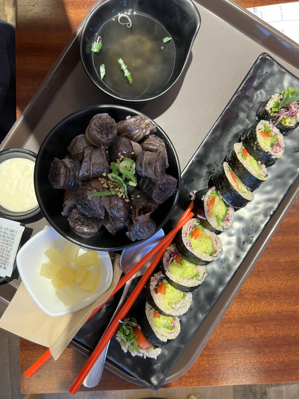 채혈 전 8시간 금식이 있어서 아침 식사 후 금식을 하고, 오후 6시쯤 채혈을 마치고 MRI가 저녁 8시 반이어서 등록만 하고, 그 사이에 지하 1층에 가서 요즘 '우영우 변호사' 때문에 먹고 싶어진 김밥과 순대를 먹고 다시 암센터에 돌아왔습니다.