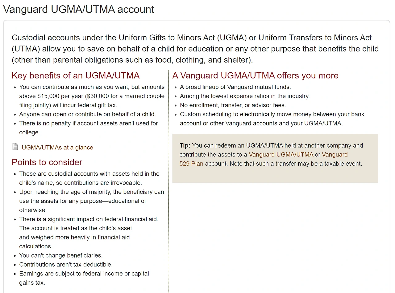 이 Custodial Account의 원래 이름은 Uniform Gift to Minors Act (줄여서 UGMA)인데, 거기서 파생된 것 중 하나가 Uniform Transfers to Minor Act (줄여서 UTMA)입니다.