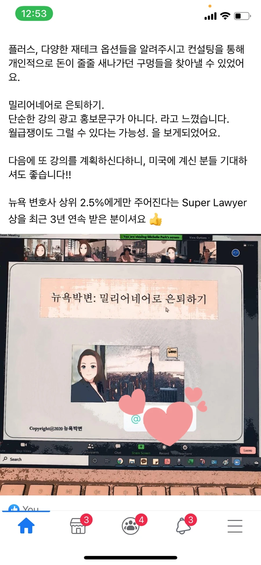 #뉴욕박변 #재정적자유 #경제적자유 #노후준비 #은퇴준비 #미국직장인 #직장인 #밀리어네어 #은퇴하기 #조기은퇴 #특강후기 #감사한마음