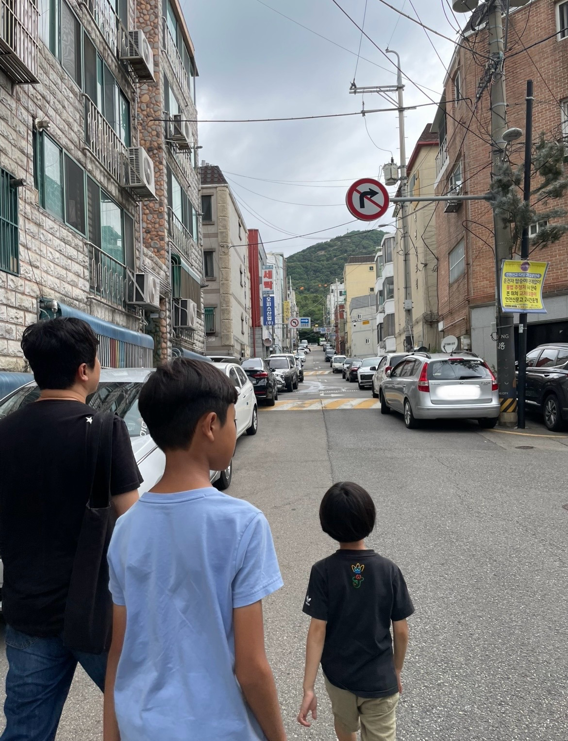 "이렇게 죽 경사진 길을 따라 올라오면 우리 집이 있었어. 맞아! 여기 이 코너가 우리 집 자리였어. 이 쪽에 대문이 있었는데."