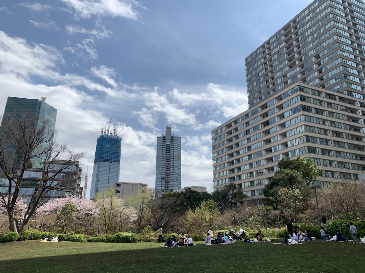 하나미 시즌에 가장 활기가 넘치는 미드타운에는