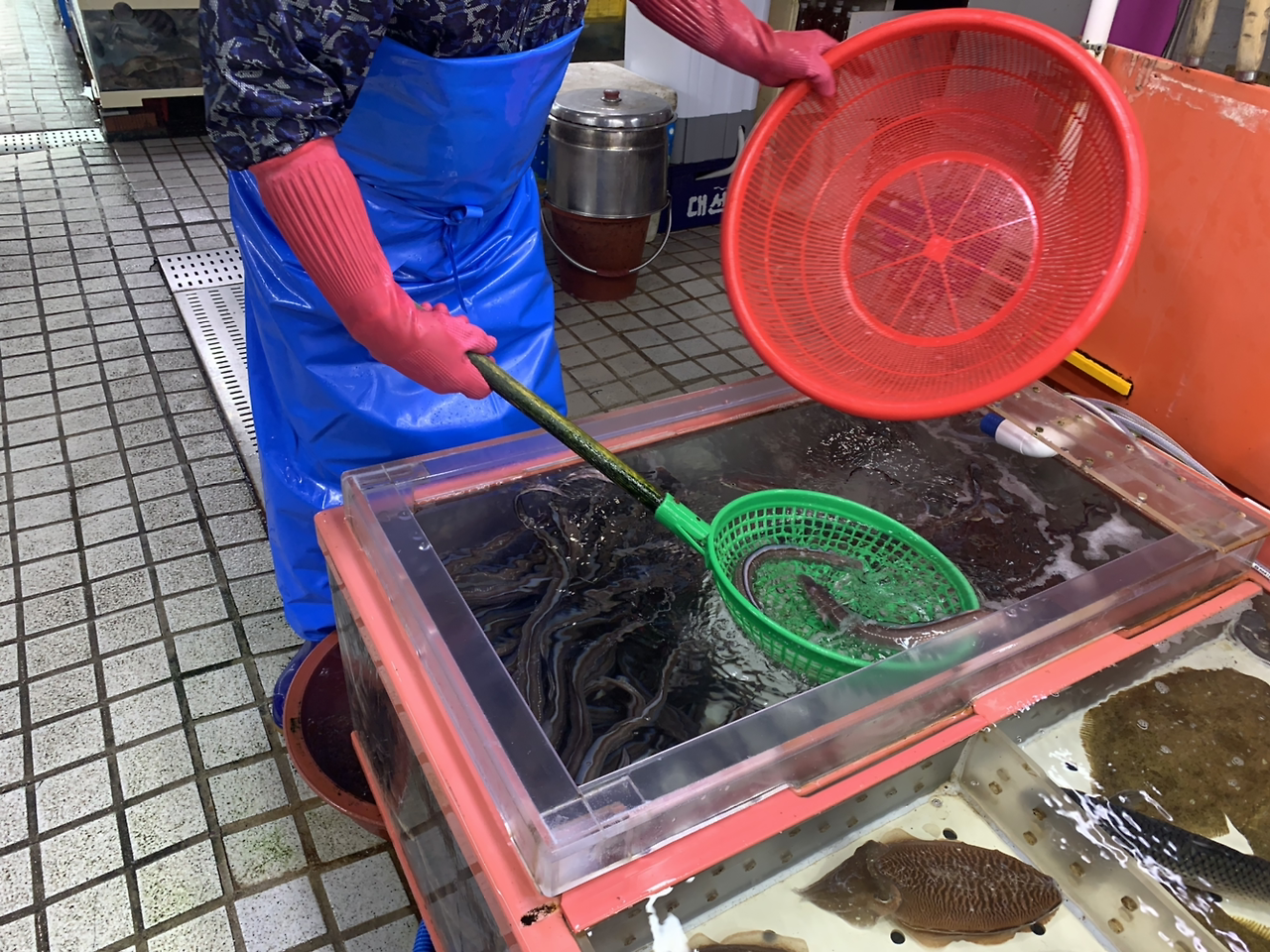 팔닥거리는 아나고를 바로 잡아서.