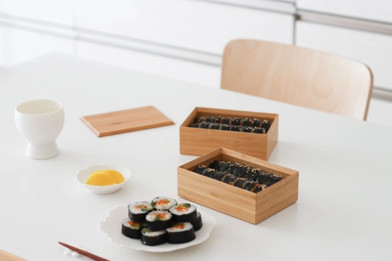 원목 도시락에 차곡차곡 담아 먹는 게 좋은데...