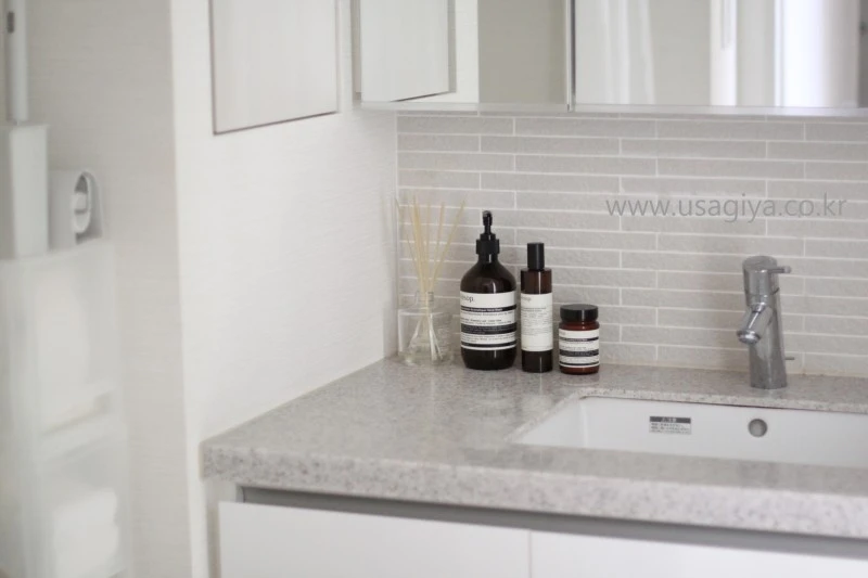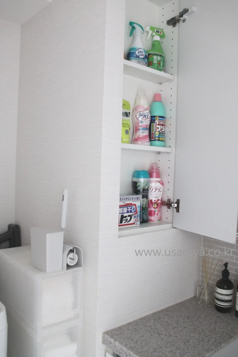 세면대 한 편의 붙박이 수납장에는