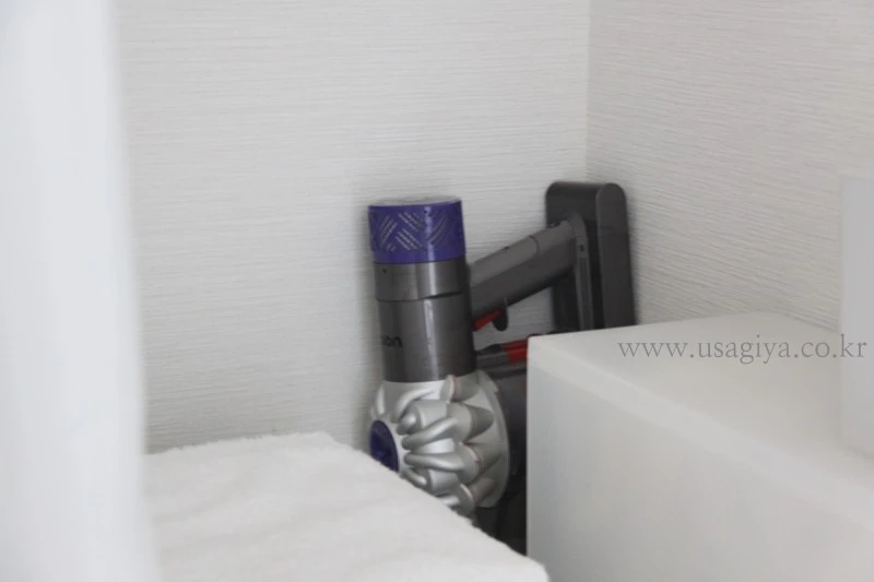 수납장의 뒤 공간은 청소기 자리로 정해두고,