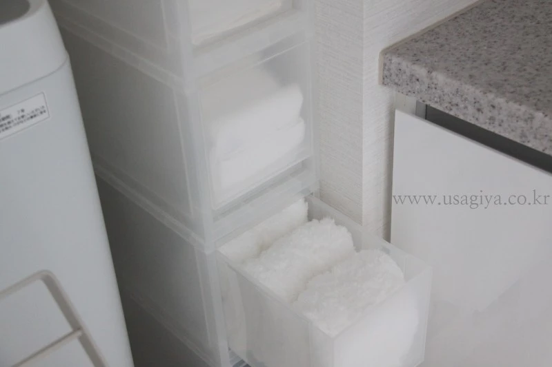 수납장에는 타월을 차곡차곡 넣어