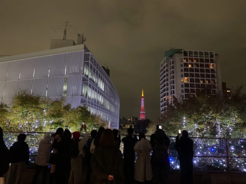 도쿄타워를 가운데 두고 사진을 찍으려는 사람들이