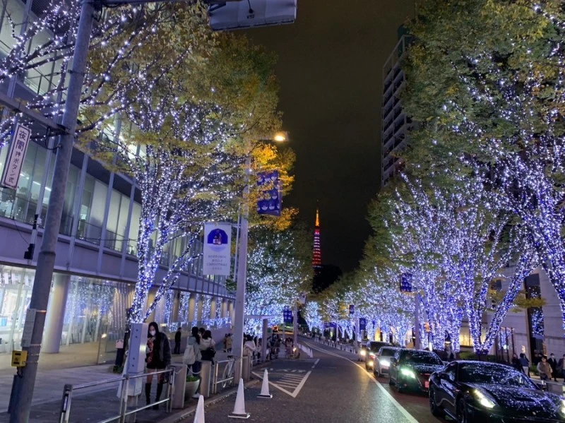 케야키자카도 옅은 블루빛으로 뒤덮였다.