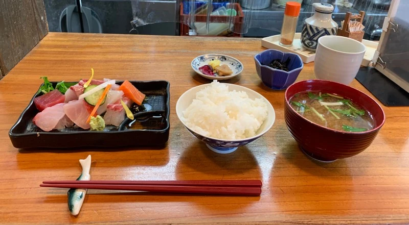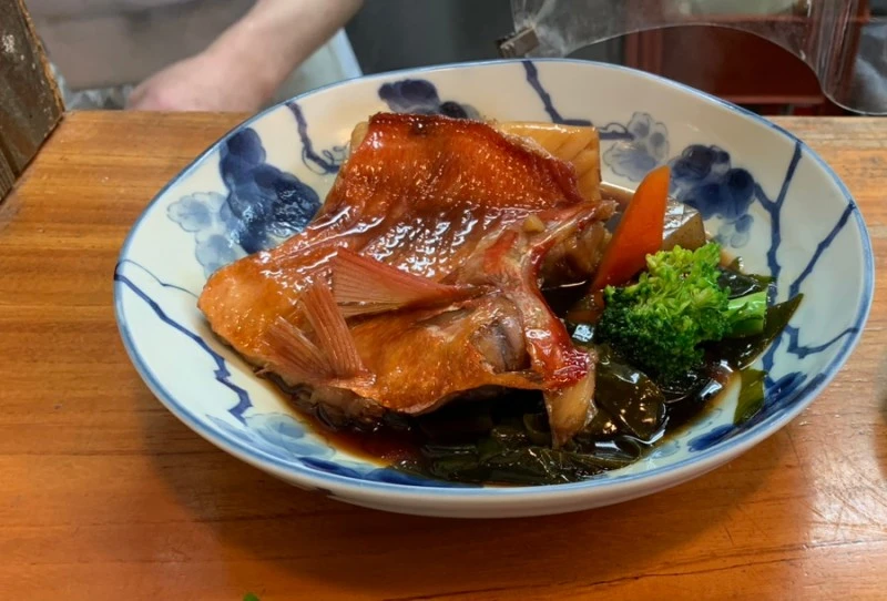 사시미와 킨메다이(금눈돔)조림 세트를 주문했다.
