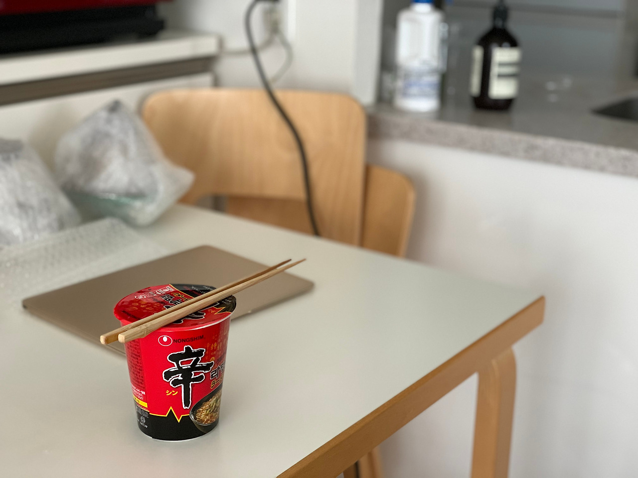 컵라면을 먹으며