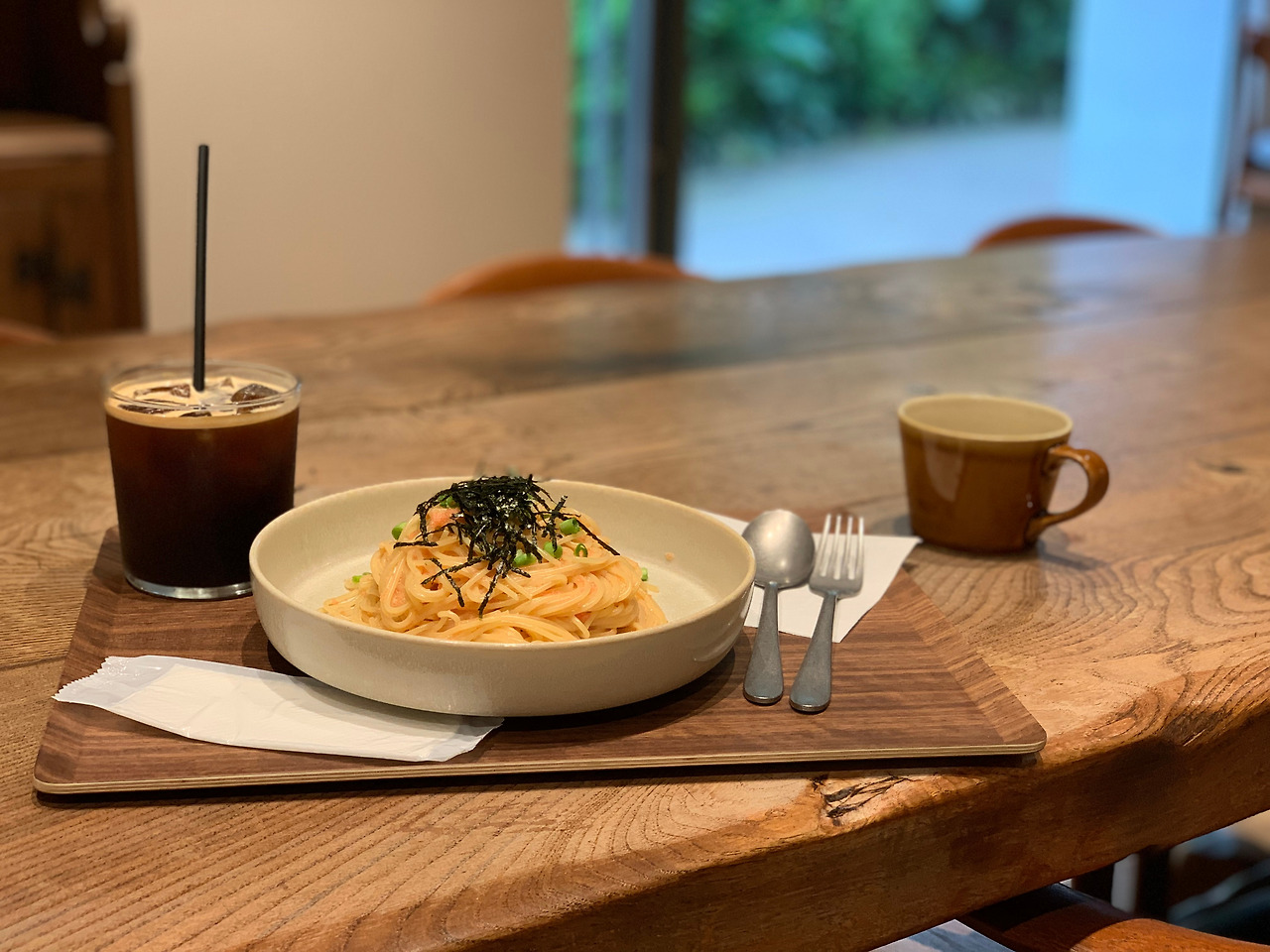 오렌지 캣의 커다란 테이블 귀퉁이에 앉아