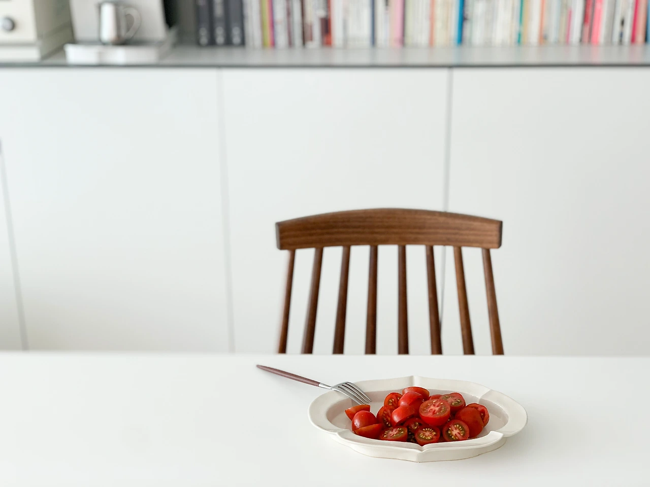 모닝 토마토를 썰어 테이블 앞에 앉았더니