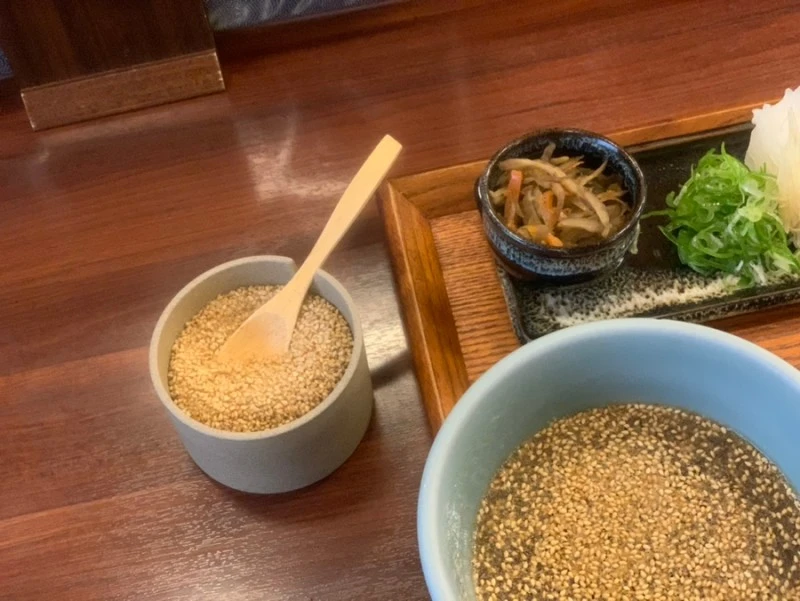 파, 무, 묘가를 쯔유에 듬뿍 넣어 먹는