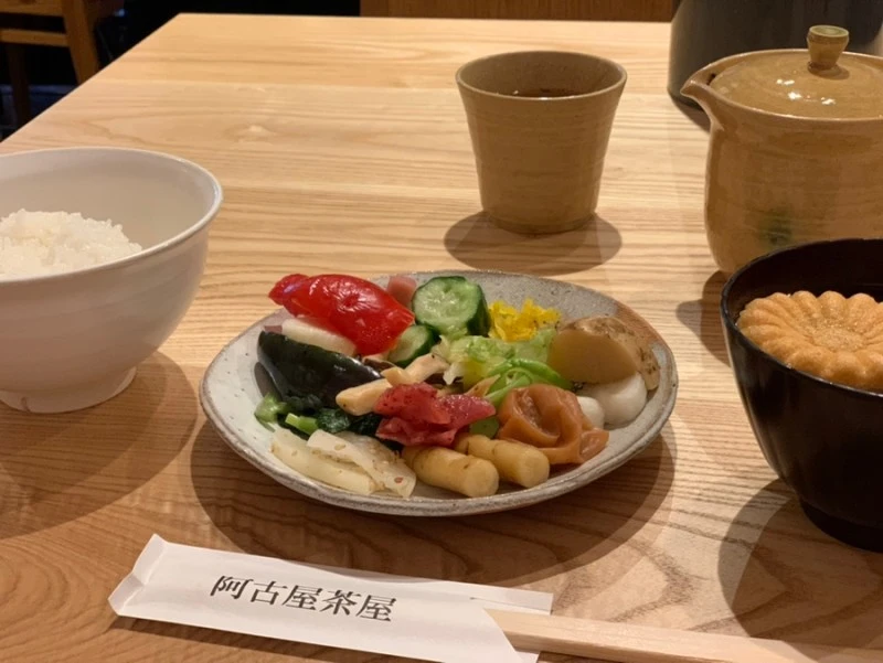 갖은 야채로 만든 신선한 츠케모노가 가득했다.