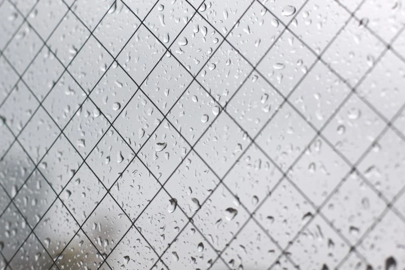 빗물이 맺힌 창밖 풍경을 담은 사진이