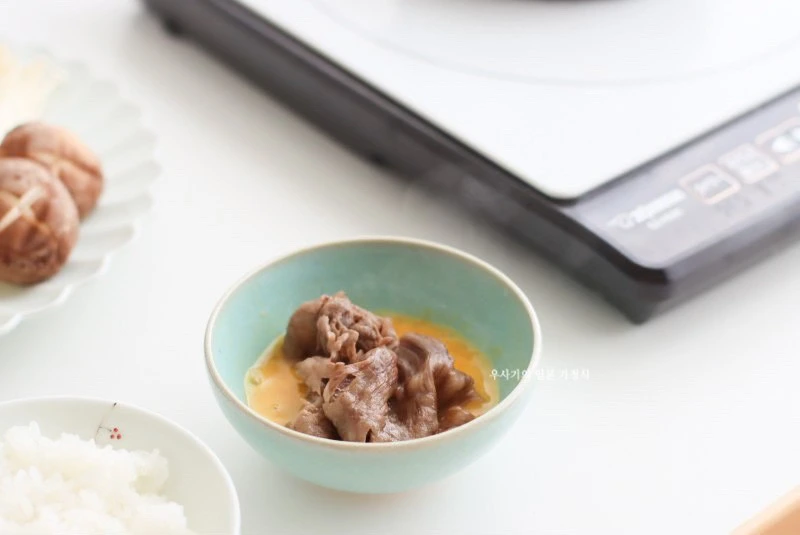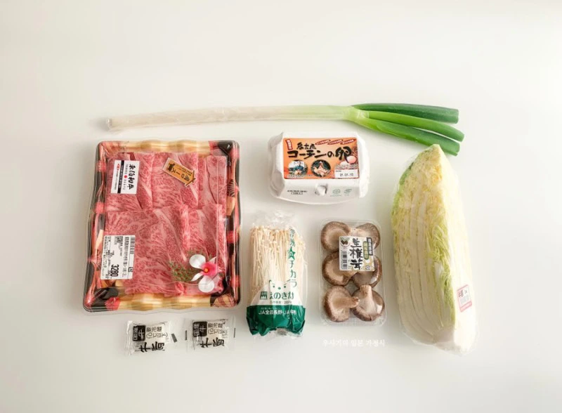 쇠고기, 파, 배추, 버섯, 두부 그리고 달걀.