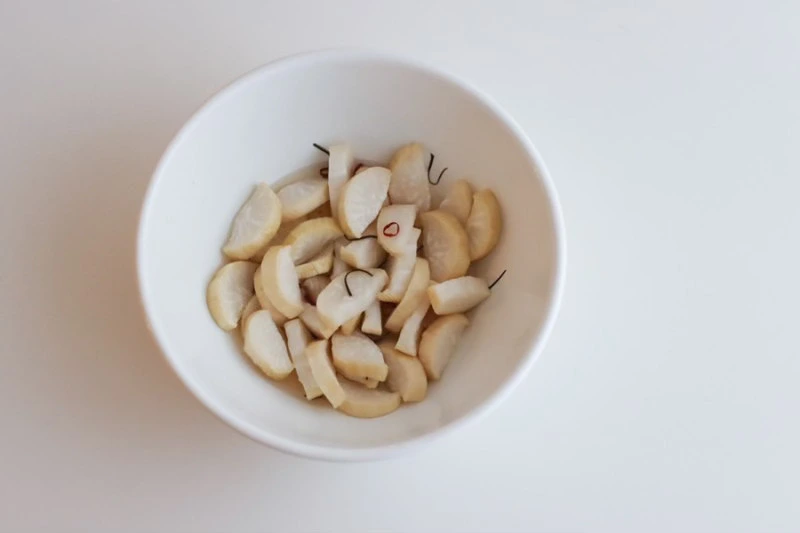 그리고 하얀 물컵과 하얀 그릇은 작년에 공방에서 만든 것인데 내가 만든 음식을 내가 만든 그릇에 담는 기분이 뭐라 말 수없이 짜릿하다. 이 작고 하얀 그릇에는 어떤 음식이 어울릴까 하고 완성된 그릇을 보며 한참을 고민했었는데 이토록 수제 단무지가 잘 어울릴 줄이야.